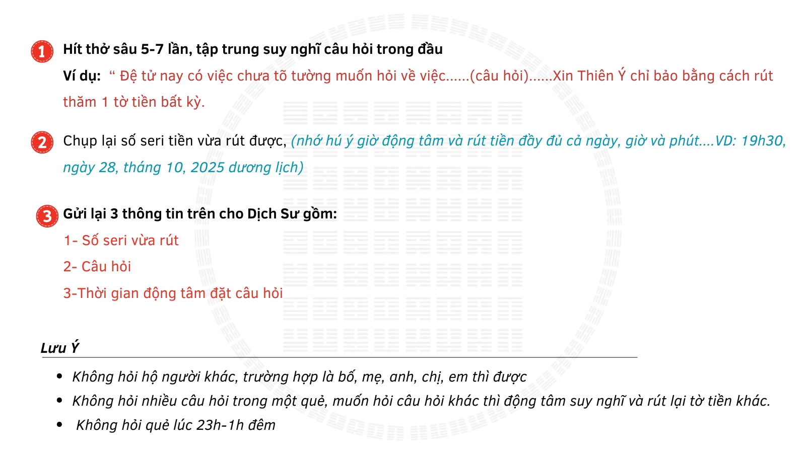 CÁC BƯỚC LẤY QUẺ DỊCH